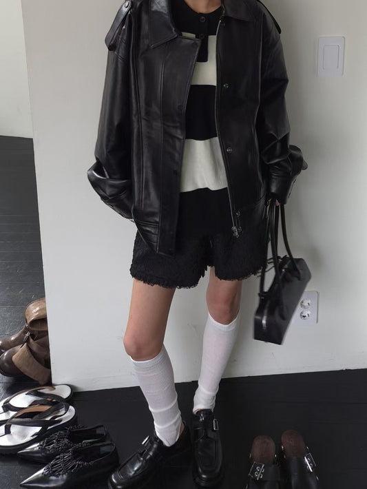 • FUSSY MADE • NIGHT BLACK PU LEATHER BIKER