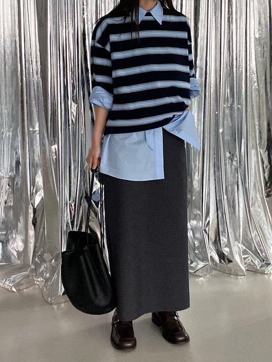 A LINE STRIPE LAYER SKIRT