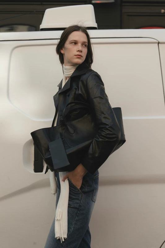NARROW WIDE LEATHER TOTE BAG