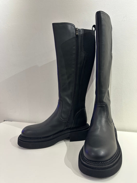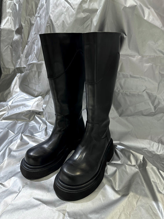 ROUND-TOE STRETCHY LEATHER LONG BOOTS