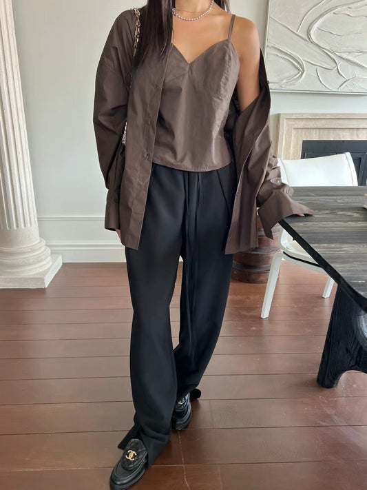 ELASTIC WAIST FRONT SPLIT PANTS
