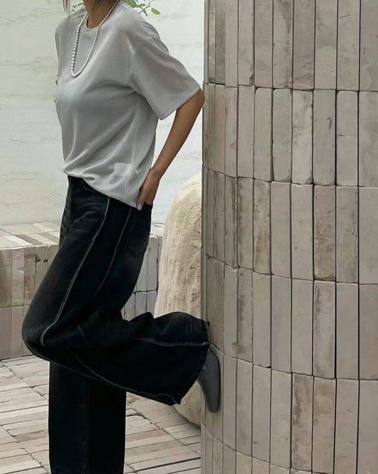 STRAIGHT WIDE DENIM PANTS
