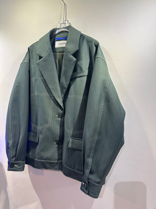 • FUSSY MADE • MATCHA PINSTRIPE BLAZ-JACKET ( Italian Fabric )