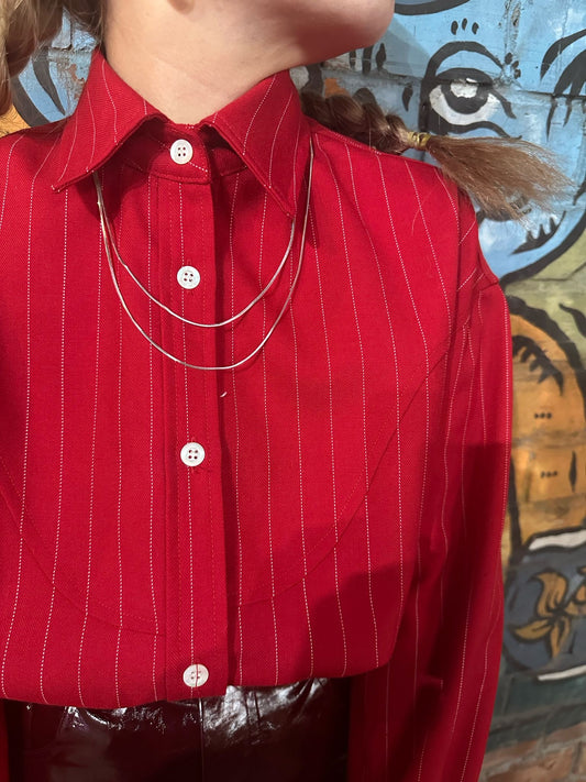 • FUSSY MADE • BRIGHT RED PINSTRIPE SHIRT