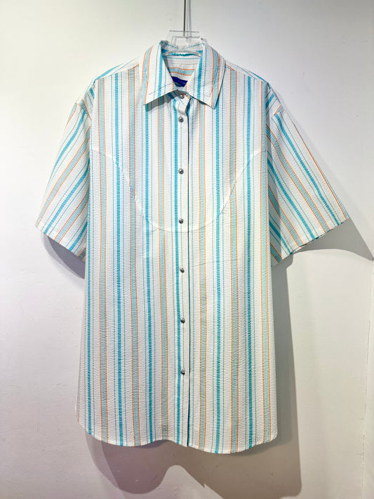 • FUSSY MADE • TEXTURED AQUA STRIPE SHIRT