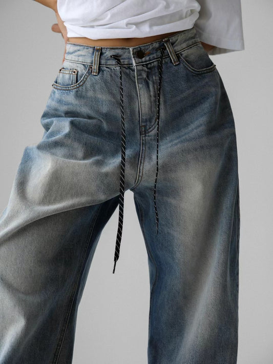 DRAWSTRING WIDE LEG JEANS