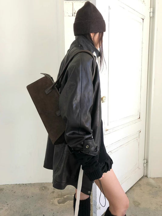 TOBACCO SUEDE JACKET - ITALIAN GOAT LEATHER