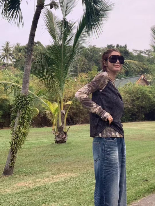 • FUSSY MADE • FAKE DENIM HOODED BLOUSE