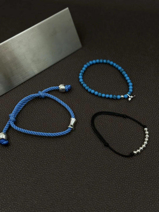 925 SILVER BEAD LEATHER KNOTS BRACELET
