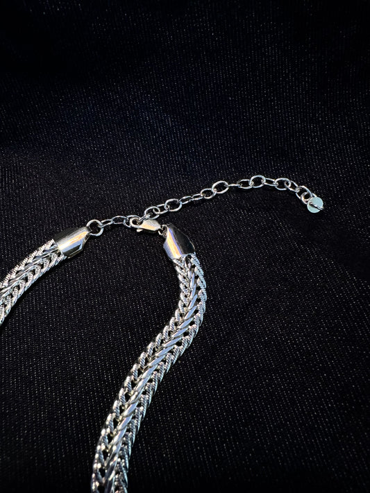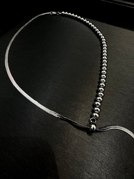 ADJUSTABLE SILVER BEADS & HERRING BONE NECKLACE