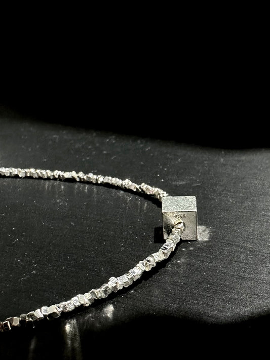 925 CUBE BLOCK SILVER BEADS NECKLACE
