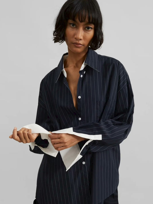 CONTRAST SLEEVES PINSTRIPES SHIRT