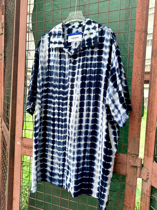 • FUSSY MADE • BLUE TIE DYE SHIBORI PRINTED SHIRT