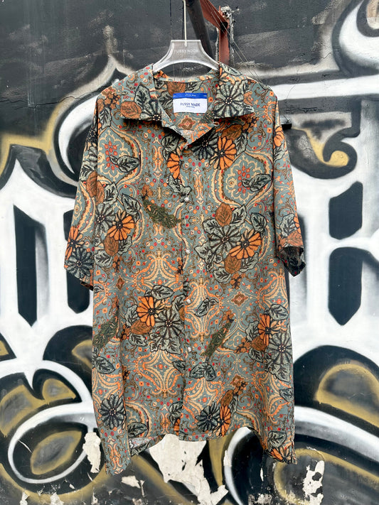 • FUSSY MADE • RETRO BROWN LEAVES PRINTED SHIRT