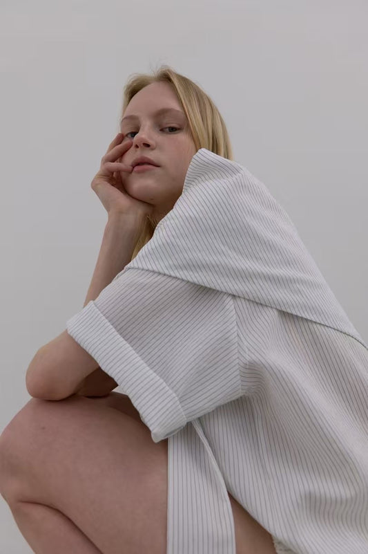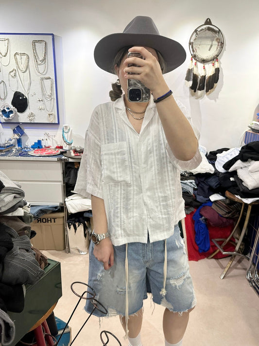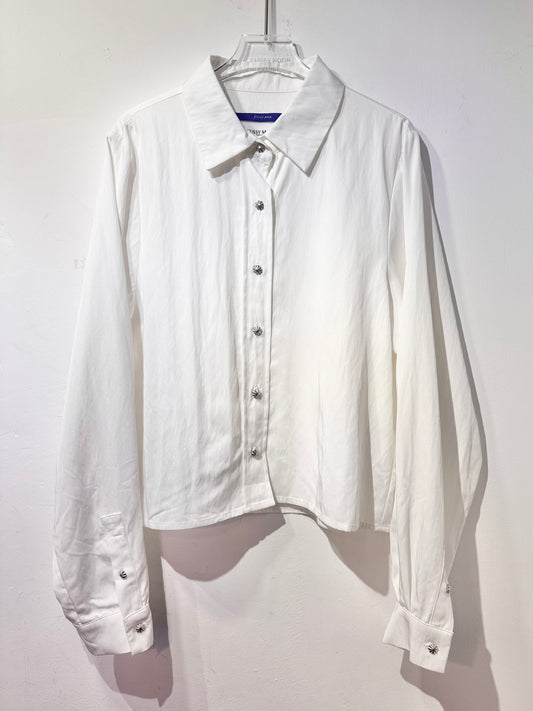 • FUSSY MADE • SOFT SILKY WHITE CROP SHIRT