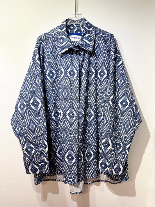 • FUSSY MADE • BLUE IKAT PRINTED SHIRT