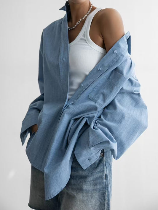 • FUSSY MADE • CHIC BLUE OVERLAY SHIRT