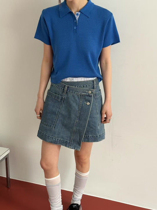 DENIM LAYERED WRAP SKIRT