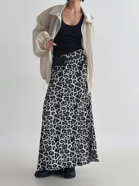 PLEAT FABRIC LEOPARD SKIRT