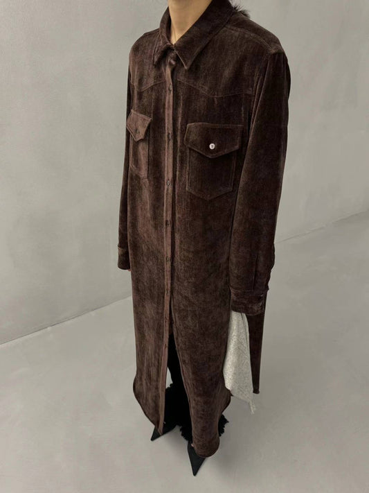 FLAP POCKET FAUX LEATHER SHIRT JACKET
