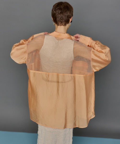 TULLE DOCKING SHEER OVERSIZED SHIRT