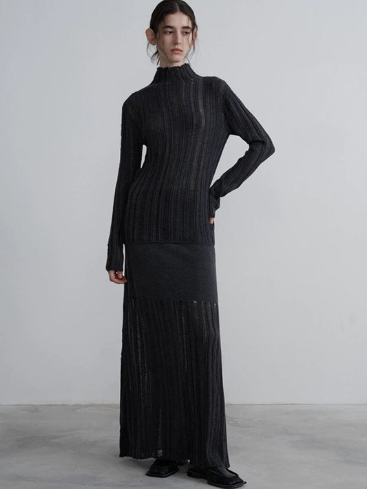 DISTRESSED KNIT MAXI SKIRT