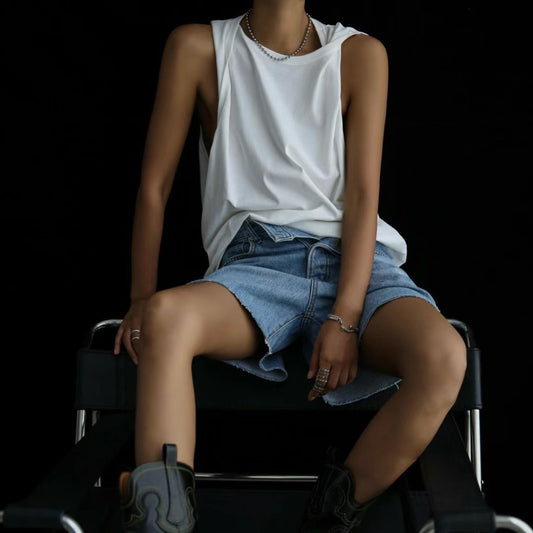 • FUSSY MADE • STRAPPED LAYERING VEST - PU BLACK
